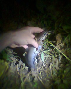 On normal days at the local hole in the Mabacan River you can sit for hours and not hook a single catfish. Recently I was tempted by a friend’s comment that the eels feed at night and so a friend and I tried out night fishing the hole. The action was twice what it was during the day and we hooked two cats, a turtle, and a paitan in an hour. Then just this evening I braved the rain and fished again. I hooked one of the biggest native hito I have caught (around 12″, lol) in the first 30 mins I fished. So far no eels, but at least I have learned that instead of sitting in the hot sun all day waiting I can fish at night and half much more fun. Hope this helps. I hooked all the fish on texas rigged nightcrawlers. They seem to be the preferred food for the fishes in our river. Sorry for no picture. I had my hands full with my light, my rod, and my umbrella 🙂