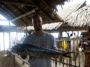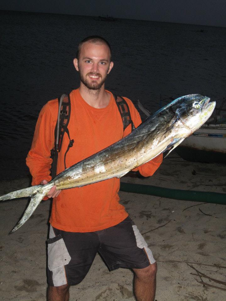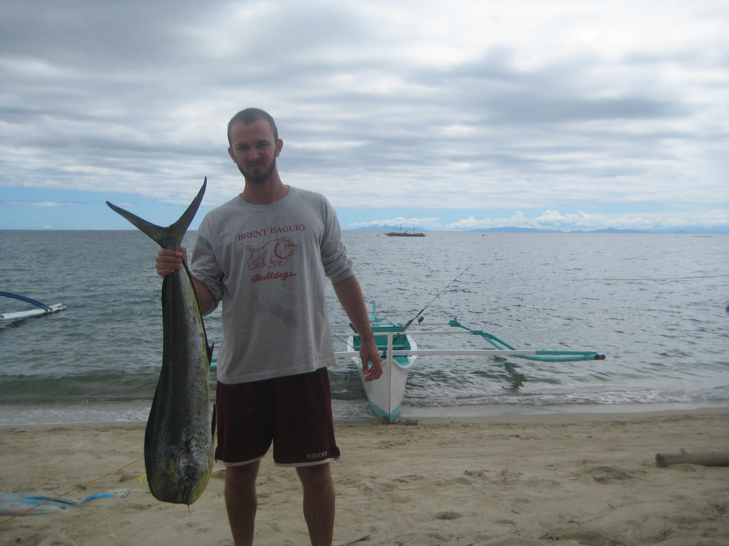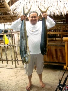 For any of you guys interested in trying dorado fishing, you can contact Mang Roger our boatman. He lives in Laiya and has a couple boats there. He is a good fisherman and knows the water there, how to fish it, how to rig gear, and how to teach first timers how to bring in dorado. Tell him you got his number from Ben the “cano” 🙂