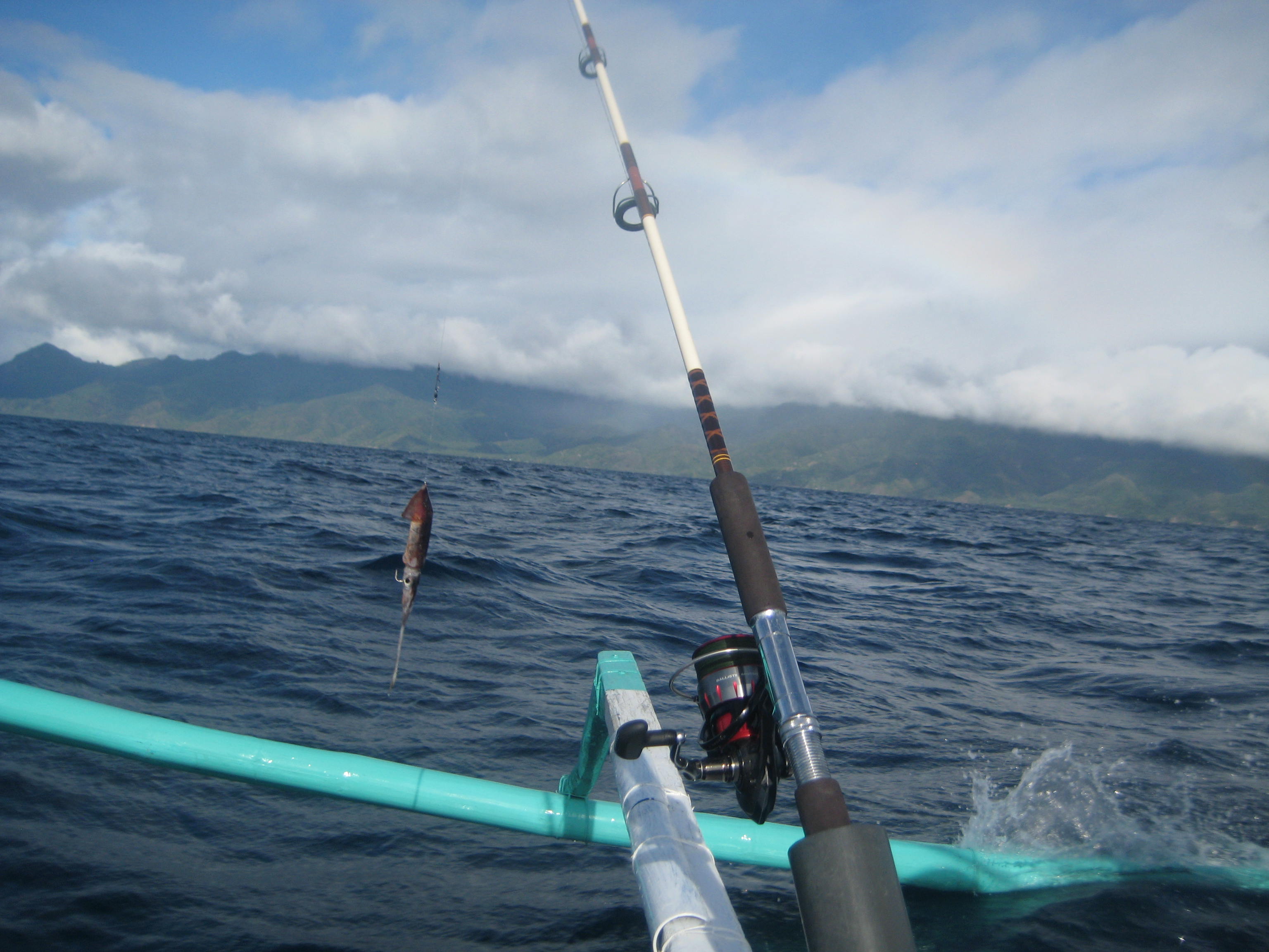 We had a slow day till around 10:30, when a big dorado took the lure pictured above. Unfortunately I was not able to get a good hook set and when the dolphin leaped then landed in the water the lure came loose. 😦 Oh well. Point proven that these lures work as a substitute for fresh squid. (Mang Roger was impressed 🙂