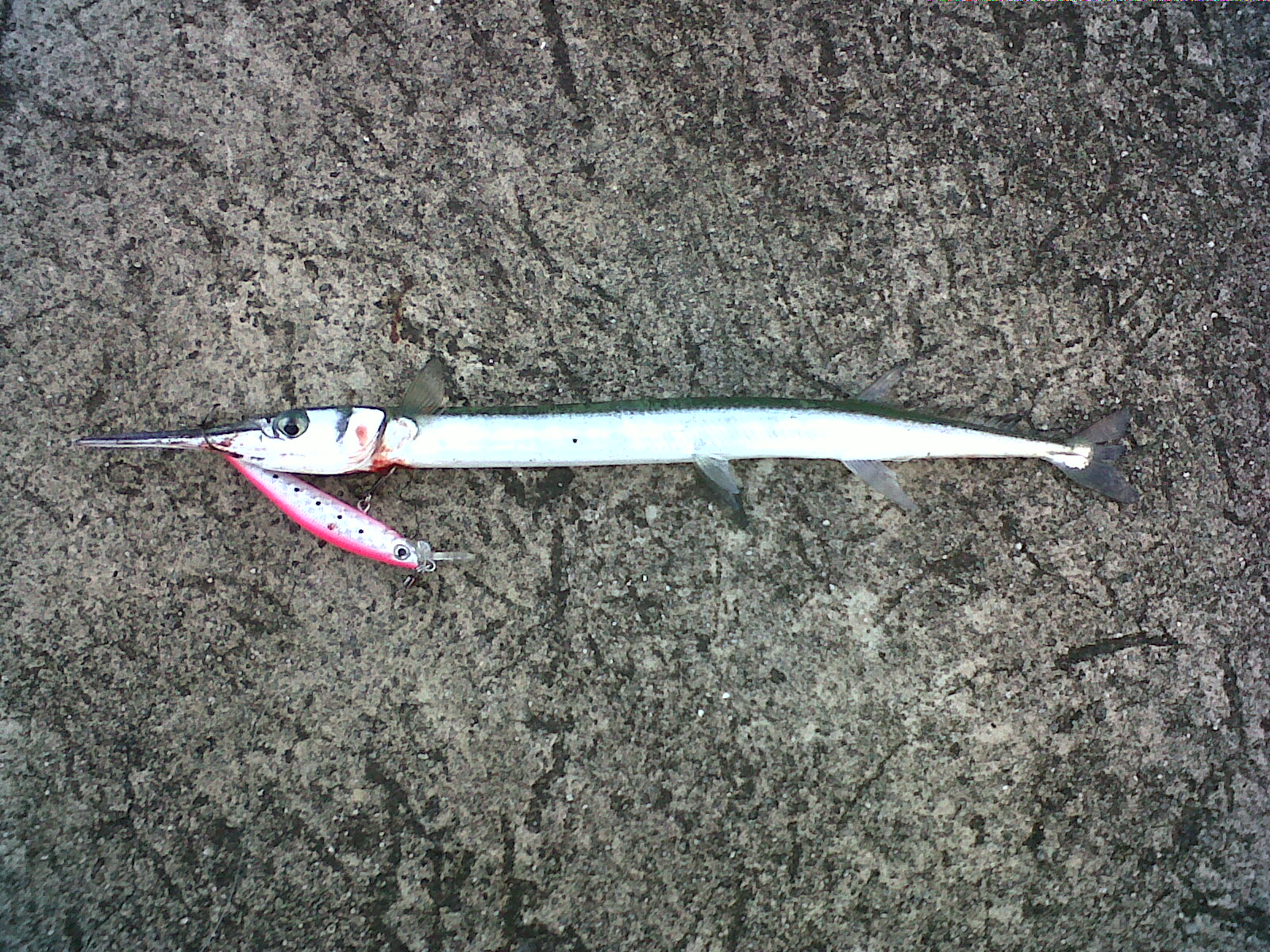 Here is a picture of a small needlefish I caught recently while fishing from the Navy Pier on Corregidor Island. I believe this is a Slender Needlefish. This species is quite common all over the country. If can often be seen patrolling the shorelines and reefs. This species can grow over a meter in length. I caught this fish while fishing a pink sardine pins minnow. I had strikes from large Crescent Grunter (probably around .5 kg each) but was not able to properly hook them. There are also many Jacks patrolling the piers.